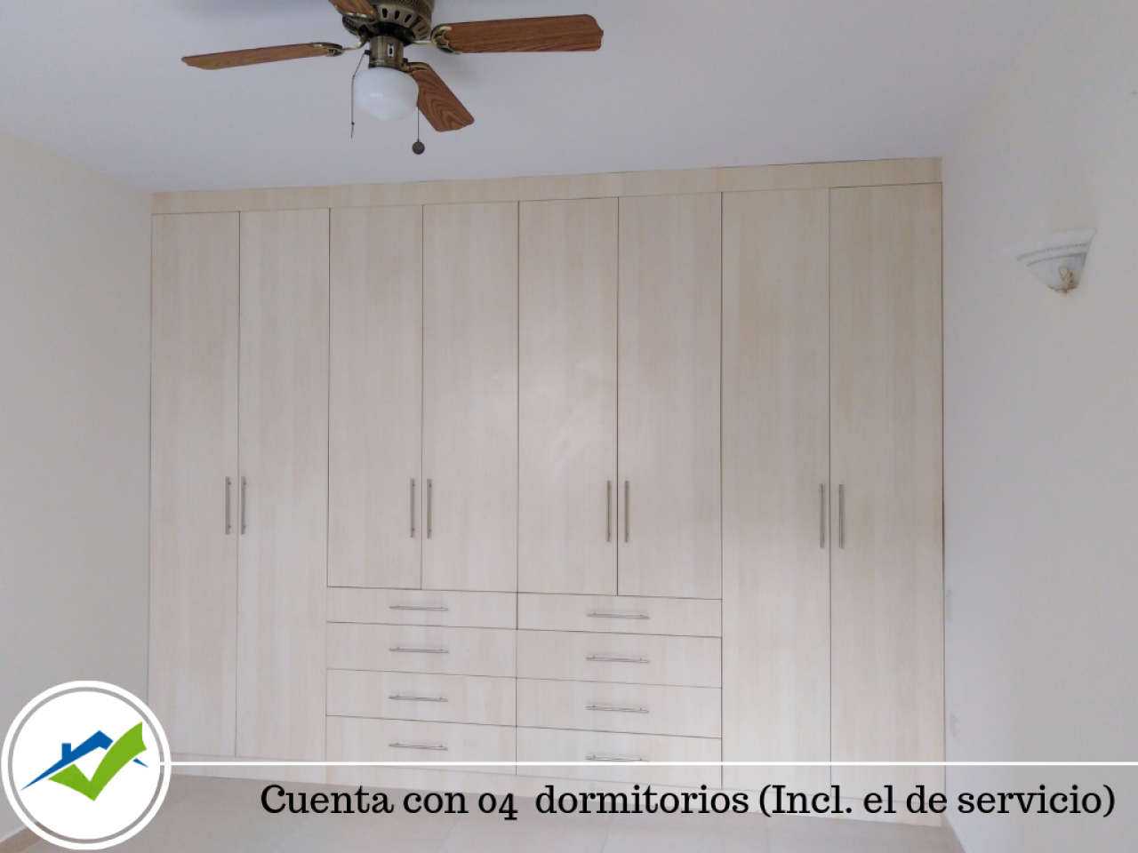 Sala con balcón, comedor, cocina, 03 dormitorios, 02 baños completos, lavandería, dormitorio de servicio con baño propio. Además el departamento cuenta con estacionamiento.