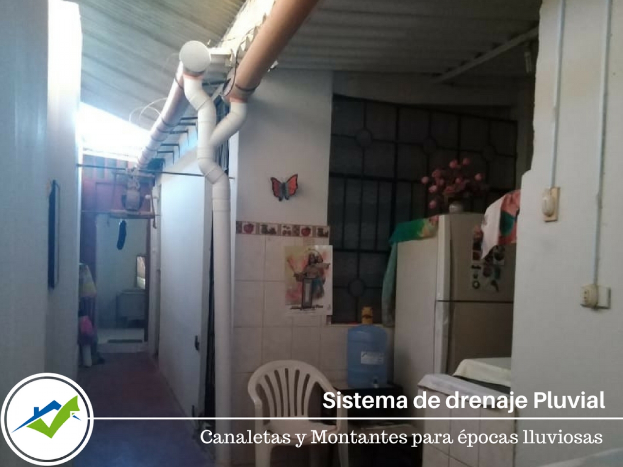 Los techos de la vivienda están impermeabilizados y además cuenta con canaletas y montantes de evacuación pluvial.