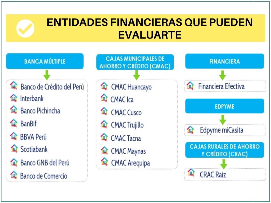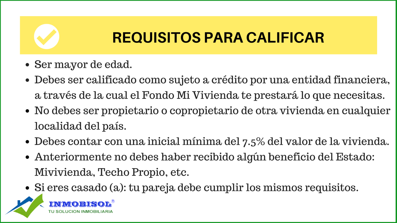 3. Debes ser evaluado por una entidad financiera, ya que el FONDO MI VIVIENDA te prestará el dinero a través de la entidad financiera que tú elijas.