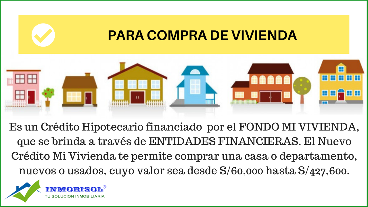 El NUEVO CRÉDITO MI VIVIENDA está dirigido para aquellas personas que adquieren por primera vez una vivienda (casa o departamento) de PRIMER USO o de SEGUNDO USO, cuyos precios varían desde S/60,000 hasta S/427,600.