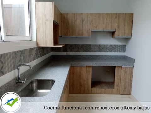 Cocina con reposteros altos y bajos, closet en todas las habitaciones.