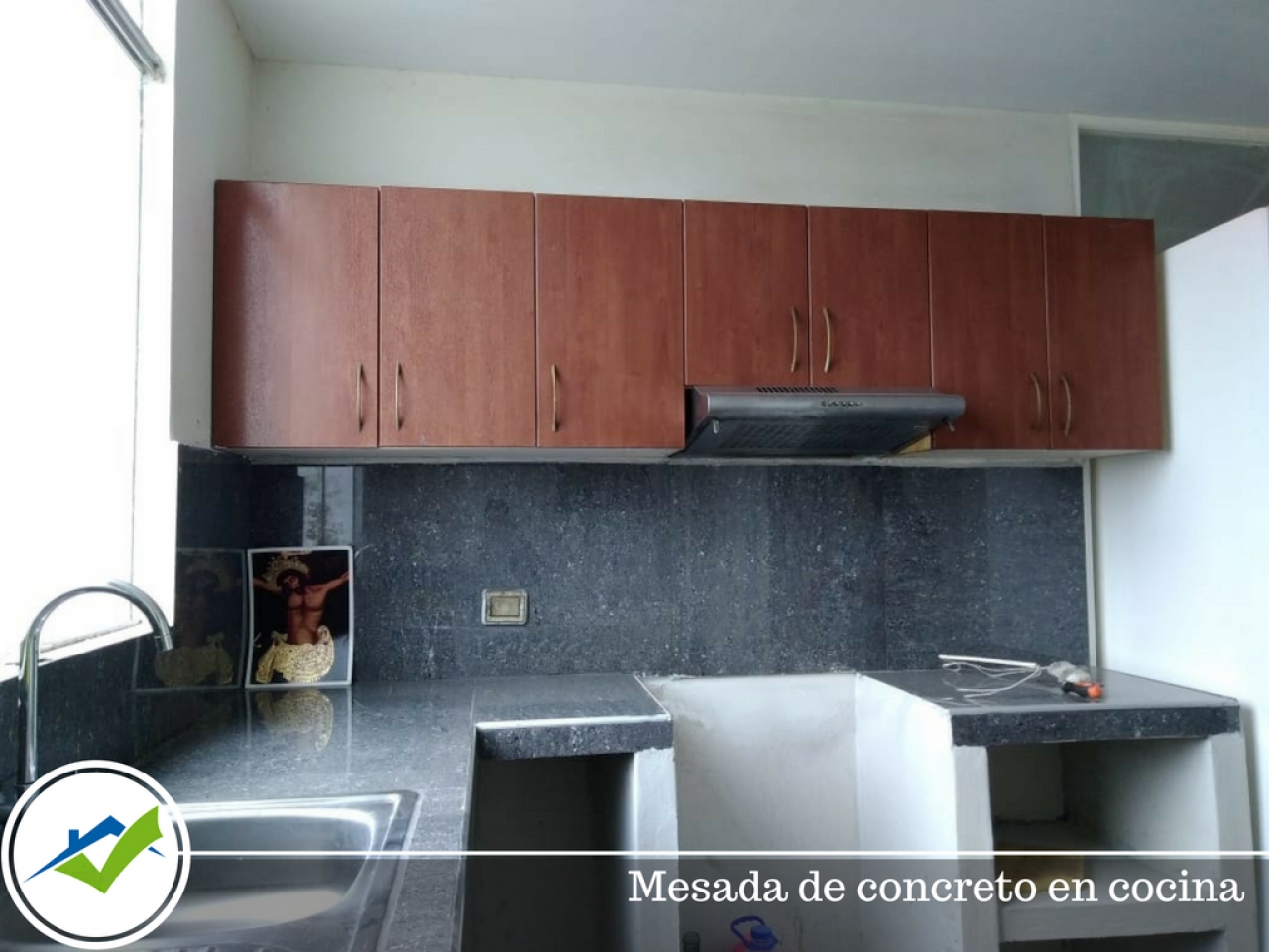 El departamento tiene una buena distribución, además cuenta con mesada de concreto en cocina y reposteros altos. BIEN VENTILADA E ILUMINADA.