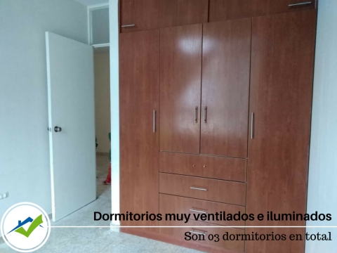 Ambientes: Sala, comedor, cocina, lavandería, 03 habitaciones con closet, 01 baño completo, estacionamiento privado.