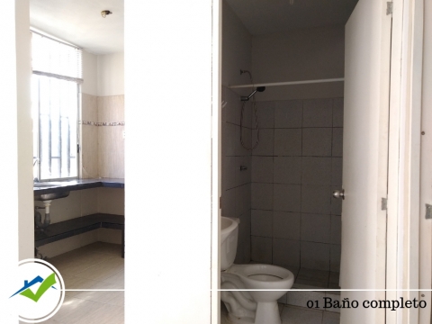Sala-comedor, cocina, 01 baño completo, 01 habitación, patio-lavandería.